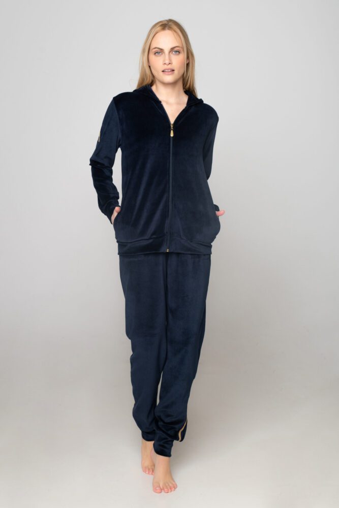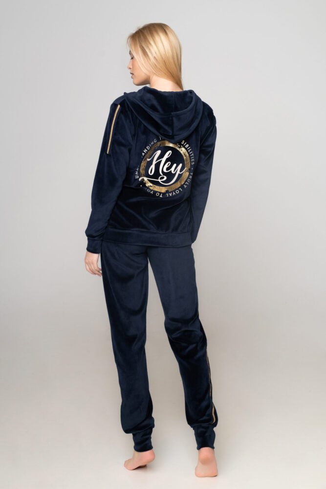 Γυναικεία φόρμα βελούδο με τύπωμα Hey στο πίσω μέρος της ζακέτας.